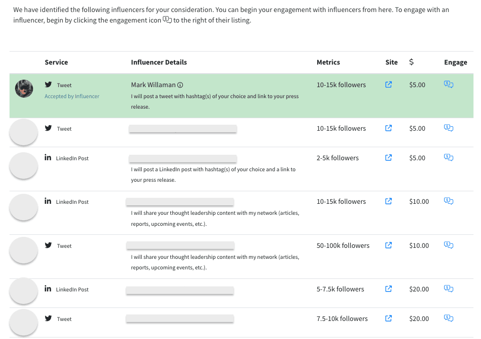 1. Newsworthy’s focus is sharing company news releases, which means it’s super easy to fulfill requests — a great way to get acclimated to influencer marketing and avoid long drawn-out negotiations over campaigns, deliverables, and compensation structure.
